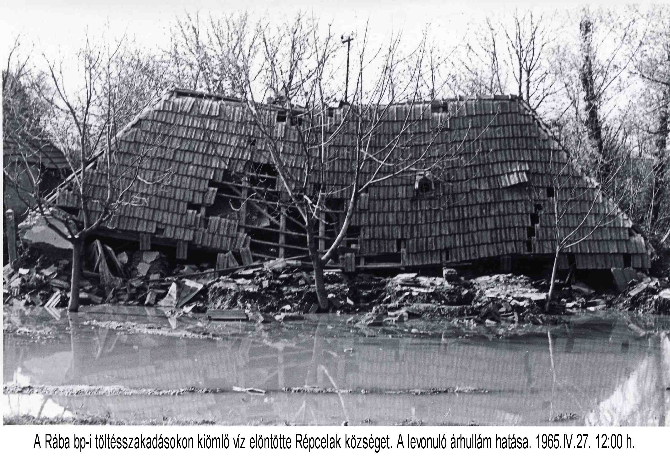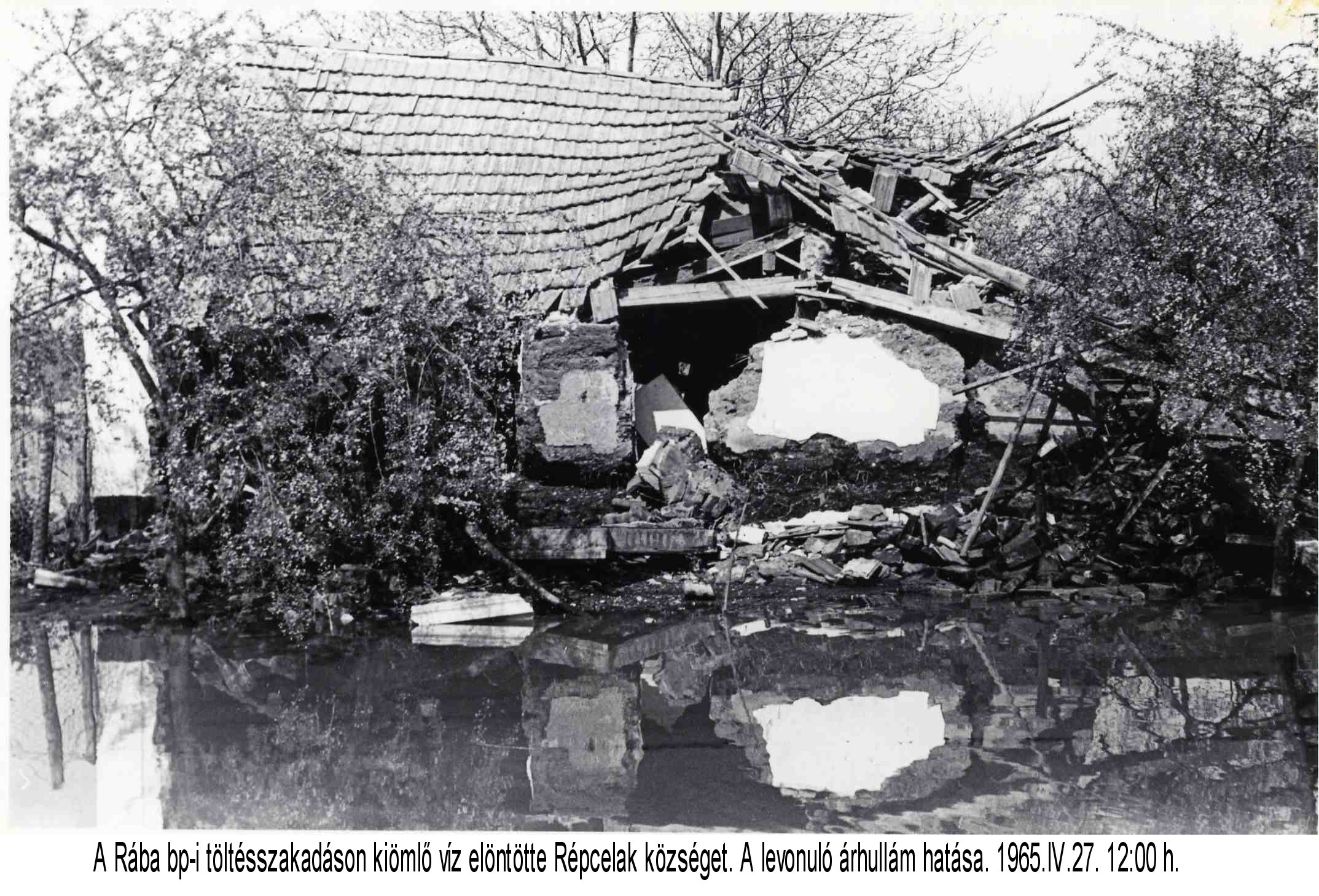1965. április és augusztus között a Rábán  nyolc árhullám vonult le, s közülük az első volt a leghevesebb. A folyó vízállása sok helyen minden korábbinál magasabb volt, annak ellenére, hogy alsó szakaszán öt, mellékvizein további öt gátszakadás következett be, s a kiömlő víz csökkentette a tetőzés magasságát. Április 23-án a Rába bal partján Rábapaty térségében, a jobb parton pedig Sitkénél 5-5 km hosszban átbukott a víz a töltéseken. A bal parti töltés két helyen, a jobb parti szintén két helyen átszakadt. A szétterülő víz a Répce-árapasztó csatorna jobb parti töltéséig vonult, elárasztotta Répcelak egy részét, majd átszakítva a töltést a Répce árapasztó csatornájába ömlött. A Marcalon két helyen is meghágás következtében szakadt el a töltés. A szakadás után Rábaszentmihály és Kisbabót védelmére körtöltéseket építettek, így a két falu megmenekült az elöntéstől.
