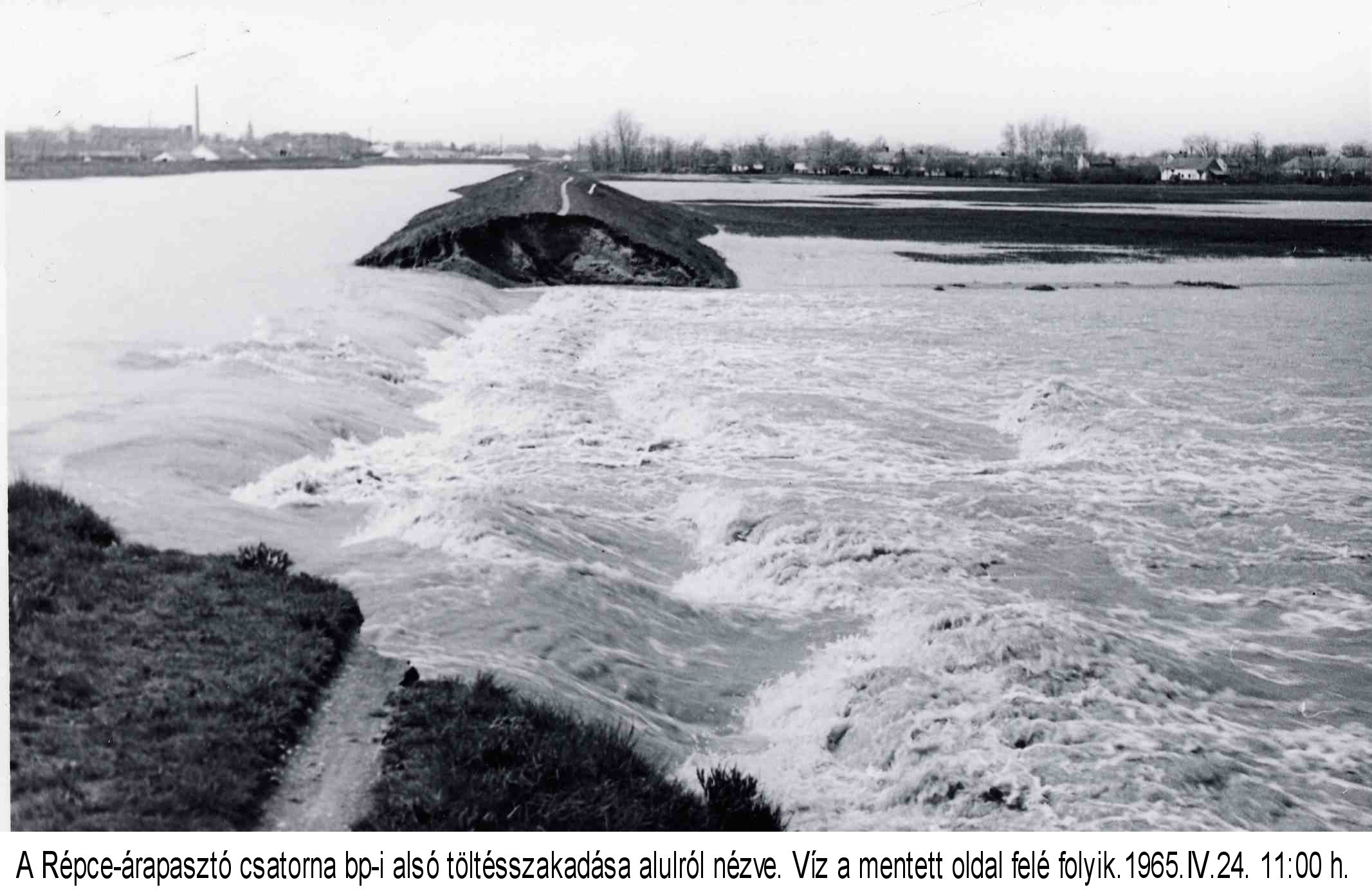 1965. április és augusztus között a Rábán nyolc árhullám vonult le, s közülük az első volt a leghevesebb. A folyó vízállása sok helyen minden korábbinál magasabb volt, annak ellenére, hogy alsó szakaszán öt, mellékvizein további öt gátszakadás következett be, s a kiömlő víz csökkentette a tetőzés magasságát. Április 23-án a Rába bal partján Rábapaty térségében, a jobb parton pedig Sitkénél 5-5 km hosszban átbukott a víz a töltéseken. A bal parti töltés két helyen, a jobb parti szintén két helyen átszakadt. A szétterülő víz a Répce-árapasztó csatorna jobb parti töltéséig vonult, elárasztotta Répcelak egy részét, majd átszakítva a töltést a Répce árapasztó csatornájába ömlött. A Marcalon két helyen is meghágás következtében szakadt el a töltés. A szakadás után Rábaszentmihály és Kisbabót védelmére körtöltéseket építettek, így a két falu megmenekült az elöntéstől.