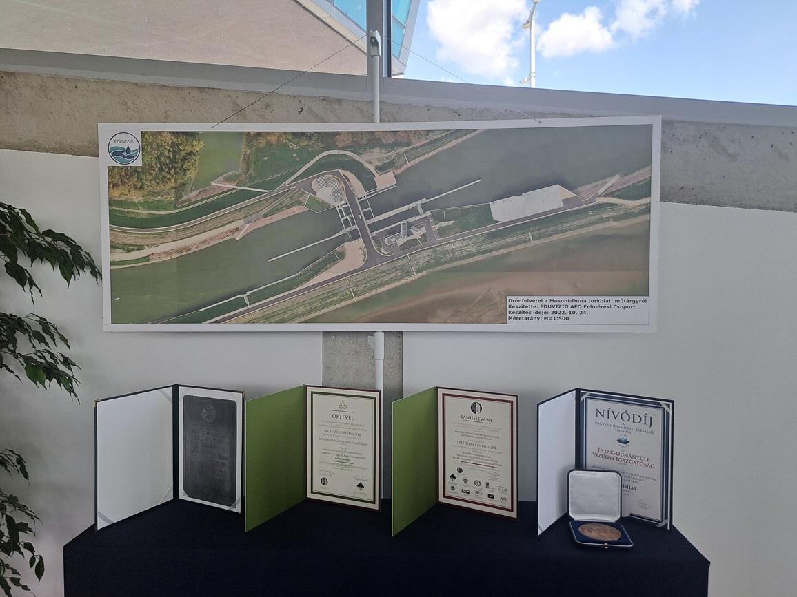 2022 nyári átadása óta immár négy rangos szakmai díjjal büszkélkedhet a Mosoni-Duna torkolati műtárgy. A Lampl Hugó Emlékplakett, és a Magyar Hidrológiai Társaság által alapított Nívódíj után Építőipari Nívódíjban, valamint Az Év Zöld Építménye különdíjban részesült Igazgatóságunk létesítménye.