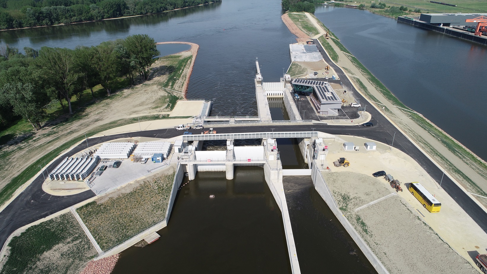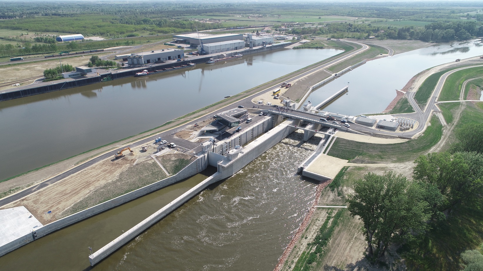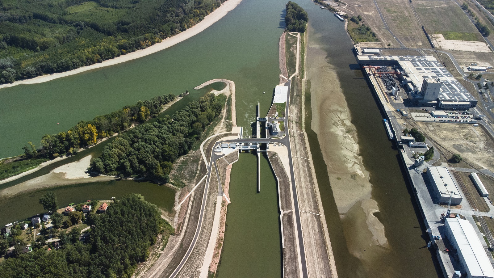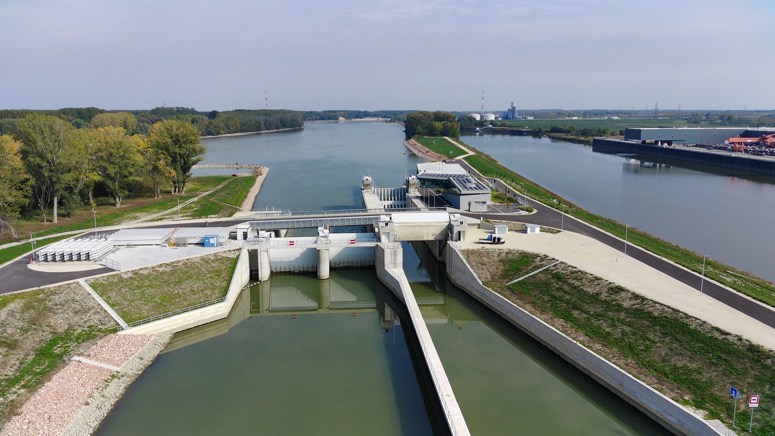 Műszaki paraméterei: A fenti összetett kérdésekre egy komplex műtárgy kialakítása jelenthetett megoldást, mely vízszint rehabilitációt biztosító két, 12 m széles nyílású vízszintszabályozó nyílással, 12x90 m paraméterű hajózsilippel, ökológiai átjárhatóságot biztosító halátjáróval épült. A műtárgy létrejöttével - mely árvízkapuként is funkcionál - a vízszint rehabilitáció hatásterületén az árvízvédelmi biztonság is javulni fog.