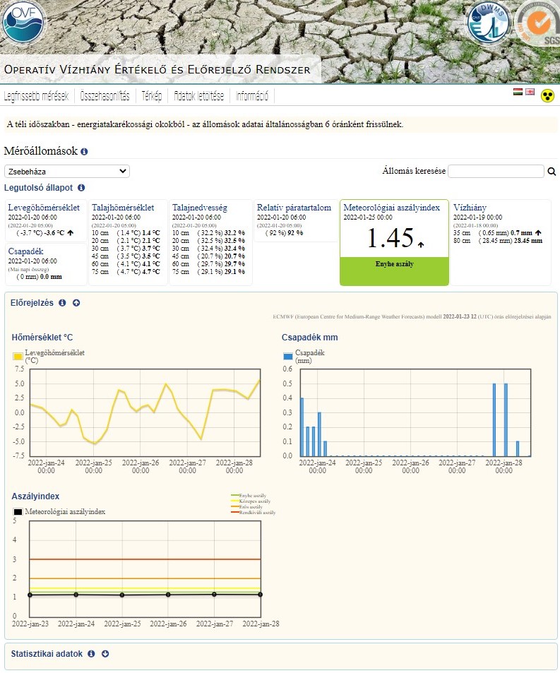 Az oldalon egy naptár segítségével az elmúlt 60 nap adatai kereshetők vissza, illetve ezek egyszerű statisztikai jellemzői is lekérdezhetők. Különböző rétegek megjelenítésével 19 féle paraméter tölthető be. Az állomási és rácsponti adatok időbeli változása diagramon is láthatóvá tehető.