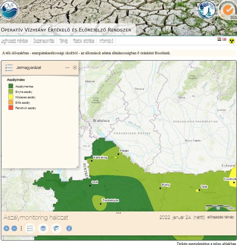 A fentieken kívül az Igazgatóságok tavasztól őszig hetente készítenek vízhiányjelentést az OVF részére. Ehhez a https://vizhiany.vizugy.hu weboldal adatait használják fel. A honlap az OVF és az ESRI Magyarország Kft. közös gondozásában készült és napi frissítéssel jeleníti meg többek között az aszálymonitoring állomásokról automatikusan beérkező információkat.