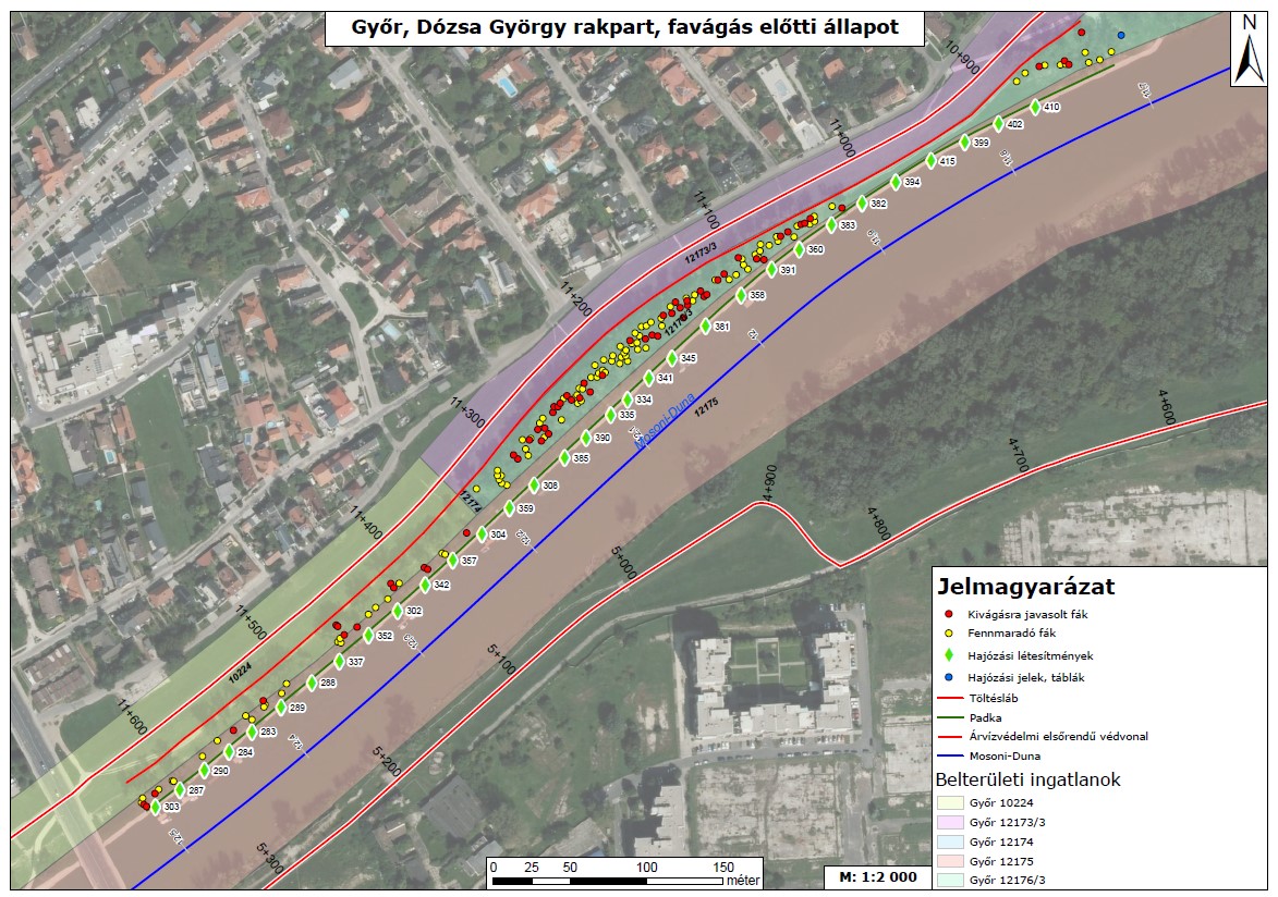 A korábban lezárult Mosoni-Duna – Lajta KEOP projektben a Győr belterületi folyószakaszokat érintő műszaki beavatkozásokhoz kapcsolódóan a balesetveszélyes és száraz fák, faágak eltávolítása már több helyszínen megvalósult, azonban a Mosoni-Duna bal parti, Széchenyi-híd alatti szakaszán (Dózsa-rakparton) eddig még nem történt még. A balesetvédelmi kármegelőzési célú fakitermelésekhez kapcsolódóan jelen esetben a belterületi folyóparti faállományok esetében azok természetes elöregedése miatt már régóta is esedékes felújításáról, a folyópartok menti idős, túlkoros, megromlott egészségi állapotú fásítások rekonstrukciójáról van szó.