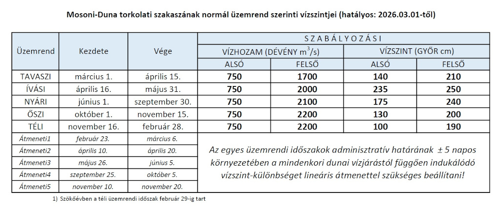 Mosoni - Duna torkolati mű üzemrendje (hatályos 2026.03.01-től)