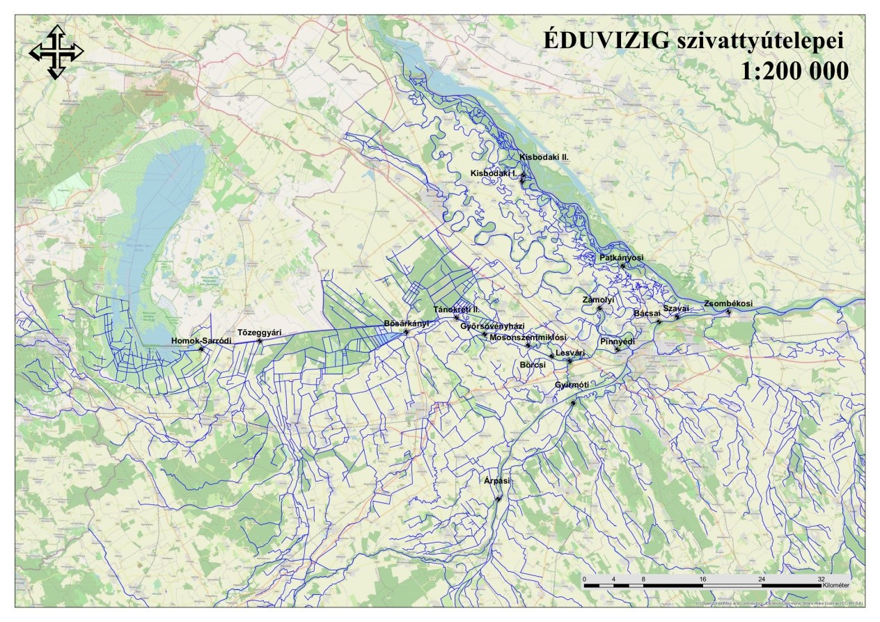 Igazgatóságunk működési területén 18 db szivattyútelep található. Ebből 6 db a Szigetközi belvízrendszer területén van, 3 db a Rába menti belvízrendszerben, 9 db pedig a Rábca-Hansági belvízrendszer területén. Üzemmódot tekintve 16 db elektromos meghajtású (48,9 m3/s teljesítményű) és 2 db diesel üzemű (6,22 m3/s teljesítményű) szivattyútelep van, így az összes kapacitás 55,12 m3/s.