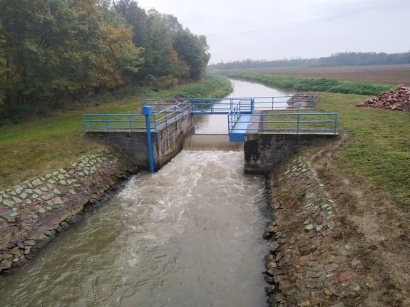 - 1,6 x 2,3 nyílásméretű fenékleürítő/vízszintszabályozó műtárgy, osztott táblás elzárószerkezettel